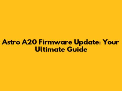 Astro A20 Firmware Update: Everything You Need To Know