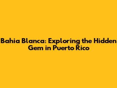 Bahia Blanca: Exploring The Hidden Gem In Puerto Rico