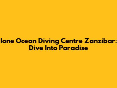 Ione Ocean Diving Centre Zanzibar: Dive Into Paradise