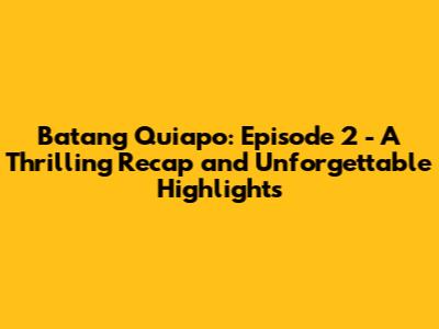 In conclusion, Batang Quiapo episode 2 was a must-watch. It delivered everything fans love about the show: gripping drama, strong performances, and unexpected twists. If you missed it, you'll definitely want to catch up, and if you watched it, you're probably already counting down the days until the next episode.