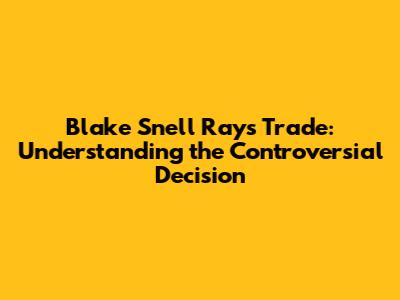 Blake Snell Trade: Why The Rays Made The Controversial Move