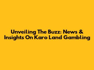 Unveiling The Buzz: News & Insights On Karo Land Gambling