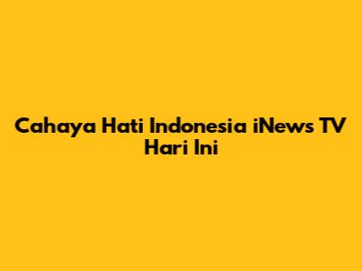 Cahaya Hati Indonesia adalah sebuah program televisi yang ditayangkan di iNews TV. Program ini fokus pada penayangan kisah-kisah inspiratif dari individu-individu di seluruh Indonesia yang telah berhasil mengatasi berbagai tantangan hidup dengan semangat dan keteguhan hati. Tujuan utama dari program ini adalah untuk memberikan motivasi, inspirasi, dan harapan kepada pemirsa, serta untuk menunjukkan bahwa setiap orang memiliki potensi untuk mencapai impian mereka, tidak peduli seberapa sulit rintangan yang dihadapi. Melalui Cahaya Hati Indonesia, kita diajak untuk melihat sisi positif dari kehidupan dan belajar dari pengalaman orang lain. Kisah-kisah yang ditampilkan sangat beragam, mulai dari perjuangan melawan penyakit, mengatasi kemiskinan, hingga meraih kesuksesan di bidang pendidikan dan karier. Program ini juga seringkali menyoroti inisiatif-inisiatif sosial yang dilakukan oleh individu atau kelompok masyarakat untuk membantu sesama dan memberikan dampak positif bagi lingkungan sekitar. Dengan demikian, Cahaya Hati Indonesia tidak hanya berfungsi sebagai hiburan, tetapi juga sebagai sumber inspirasi dan motivasi yang sangat berharga bagi pemirsa.