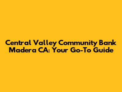 Hey there, folks! Let's dive into the world of Central Valley Community Bank (CVCB) in Madera, CA. If you're anything like me, you're always on the lookout for a reliable bank that understands the local vibe and can cater to your financial needs. Well, CVCB in Madera might just be what you're looking for! This article is your comprehensive guide to everything you need to know about CVCB in Madera, from their services and branch locations to their online banking features and customer experiences. We'll explore why CVCB stands out in the crowded financial landscape and how it can benefit you. Whether you're a long-time resident of Madera, a newcomer, or just someone exploring banking options, stick around. We'll make sure you have all the essential info to make informed decisions about your financial future. Let's get started, shall we?