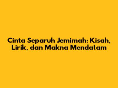 Semoga artikel ini memberikan pemahaman yang lebih mendalam tentang Cinta Separuh Jemimah dan menginspirasi kita semua untuk lebih menghargai cinta dalam hidup kita. Jangan lupa untuk terus mendukung karya-karya Jemimah dan musisi Indonesia lainnya!
