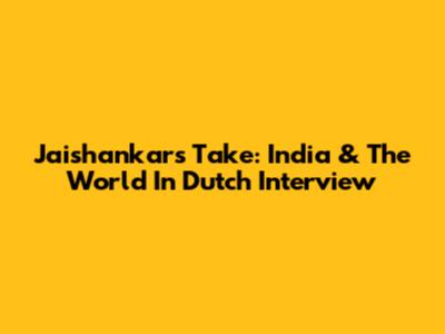 Jaishankar's Take: India & The World In Dutch Interview