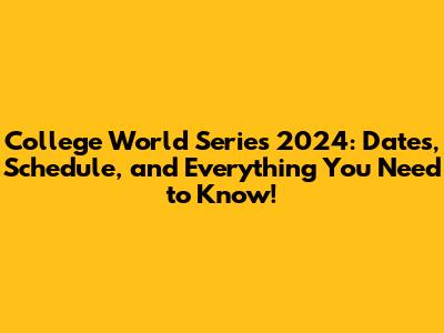 Unveiling the College World Series 2024 Schedule: Key Dates