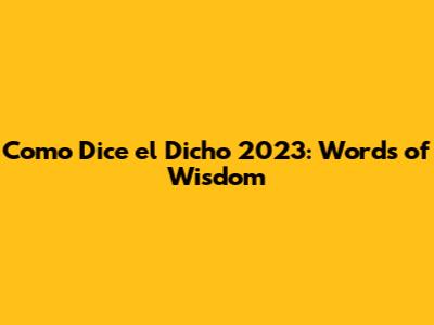 Como Dice El Dicho 2023: Words Of Wisdom