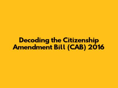 Decoding The Citizenship Amendment Bill (CAB) 2016
