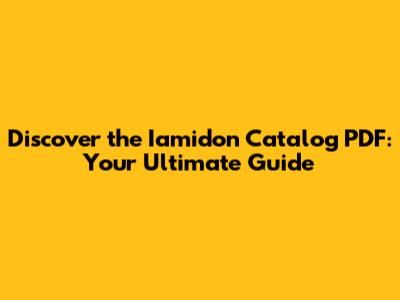 Navigating the Iamidon Catalog PDF: What to Expect