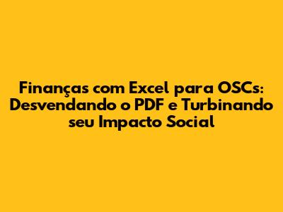 Olá, pessoal! Se você está envolvido em uma Organização da Sociedade Civil (OSC) e busca otimizar a gestão financeira, este guia é para você. Vamos mergulhar no universo das finanças com Excel para OSCs, explorando como o uso estratégico do Excel, incluindo a integração com arquivos PDF, pode revolucionar a forma como sua organização lida com seus recursos. Preparem-se para aprender, de forma descomplicada, como dominar o Excel e transformar dados financeiros em informações valiosas para tomadas de decisão.
