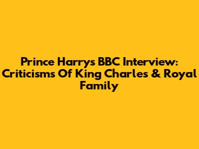 Prince Harry's BBC Interview: Criticisms Of King Charles & Royal Family