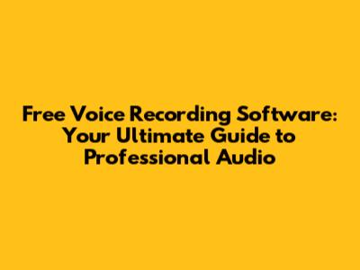 Free Voice Recording Software: Your Ultimate Guide