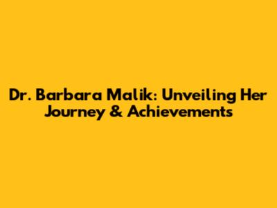 Dr. Barbara Malik: Unveiling Her Journey & Achievements