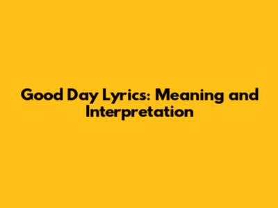 Good Day Lyrics: Meaning And Interpretation