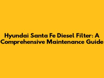 Hyundai Santa Fe Diesel Filter: Maintenance Guide