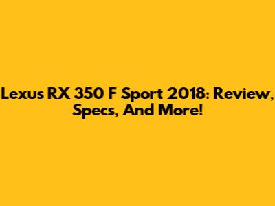 Lexus RX 350 F Sport 2018: Review, Specs, And More!