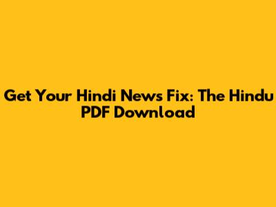 Get Your Hindi News Fix: The Hindu PDF Download