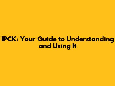 IPCK: Your Guide To Understanding And Using It