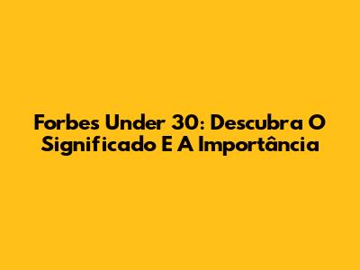 Forbes Under 30: Descubra O Significado E A Importância