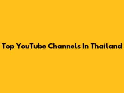 Top YouTube Channels In Thailand