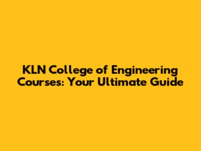 Undergraduate Courses at KLN College of Engineering: A Detailed Overview