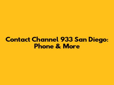 Contact Channel 933 San Diego: Phone & More