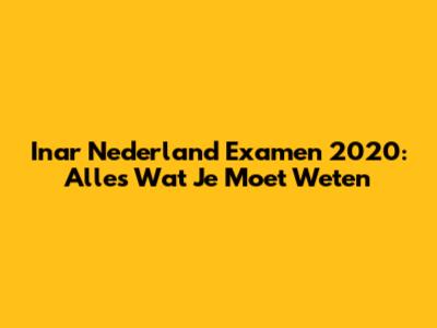 Ina'r Nederland Examen 2020: Alles Wat Je Moet Weten