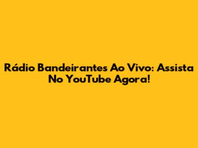 Rádio Bandeirantes Ao Vivo: Assista No YouTube Agora!
