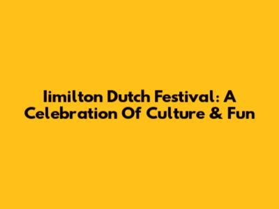 Iimilton Dutch Festival: A Celebration Of Culture & Fun