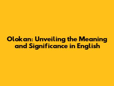 Olokan: Unveiling The Meaning And Significance In English