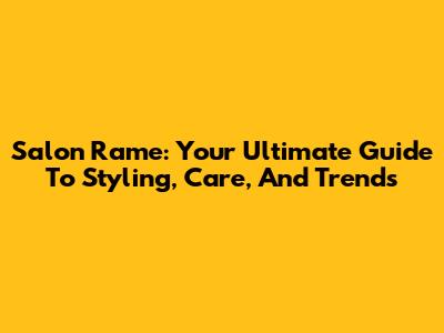 Salon Rame: Your Ultimate Guide To Styling, Care, And Trends