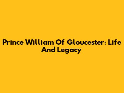 Prince William Of Gloucester: Life And Legacy
