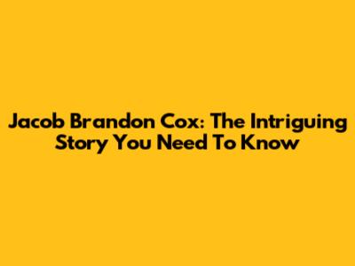 Jacob Brandon Cox: The Intriguing Story You Need To Know