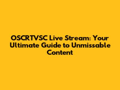 OSCRTVSC Live Stream: Your Ultimate Guide To Unmissable Content