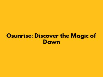 Osunrise: Discover The Magic Of Dawn