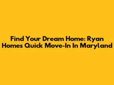 Find Your Dream Home: Ryan Homes Quick Move-In In Maryland