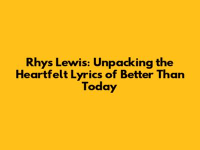 Hey guys! Ever stumbled upon a song that just hits you right in the feels? That's exactly what happened when I first heard "Better Than Today" by Rhys Lewis. This track isn't just a catchy tune; it's a lyrical masterpiece that dives deep into the complexities of love, vulnerability, and the incredible power of finding that one person who makes everything else fade away. If you're looking for lyrics that speak to your soul and make you reflect on your own relationships, then you've come to the right place. We're going to break down "Better Than Today" line by line, exploring the emotions, the imagery, and why this song has resonated with so many people around the globe. Get ready to dive into a world of raw honesty and beautiful sentiment because Rhys Lewis has truly gifted us with something special here.