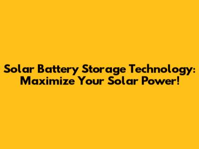 Solar Battery Storage: Maximize Your Solar Power!