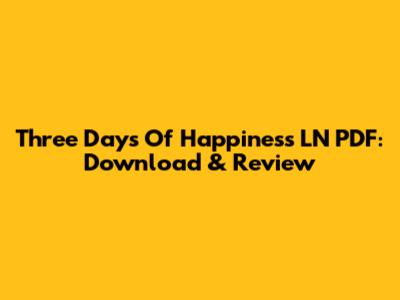Three Days Of Happiness LN PDF: Download & Review