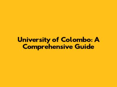 University Of Colombo: A Comprehensive Guide