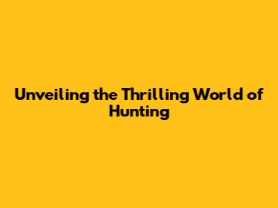 Unveiling The Thrilling World Of Hunting