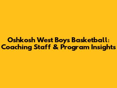 Oshkosh West Boys Basketball: Coaching Staff & Program Insights